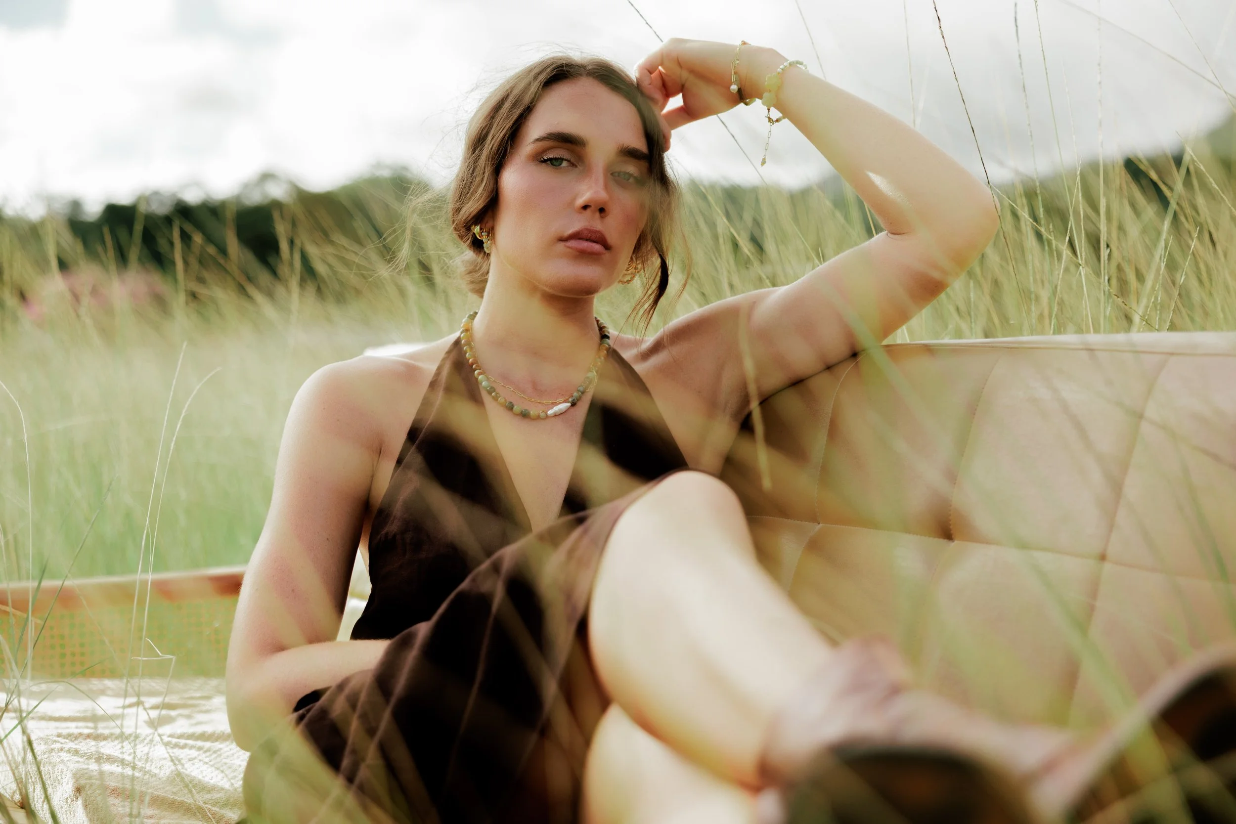 Inspired by the landscape surrounding Ochre's studio, from deep forest greens to golden ambers and soft, tonal hues. Beaded details echoing the movement of nature, creating pieces that feel grounded, and one of a kind.